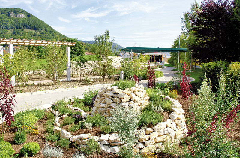 De nombreuses possibilités agréables de s'asseoir invitent à se reposer et à contempler en prenant son temps.